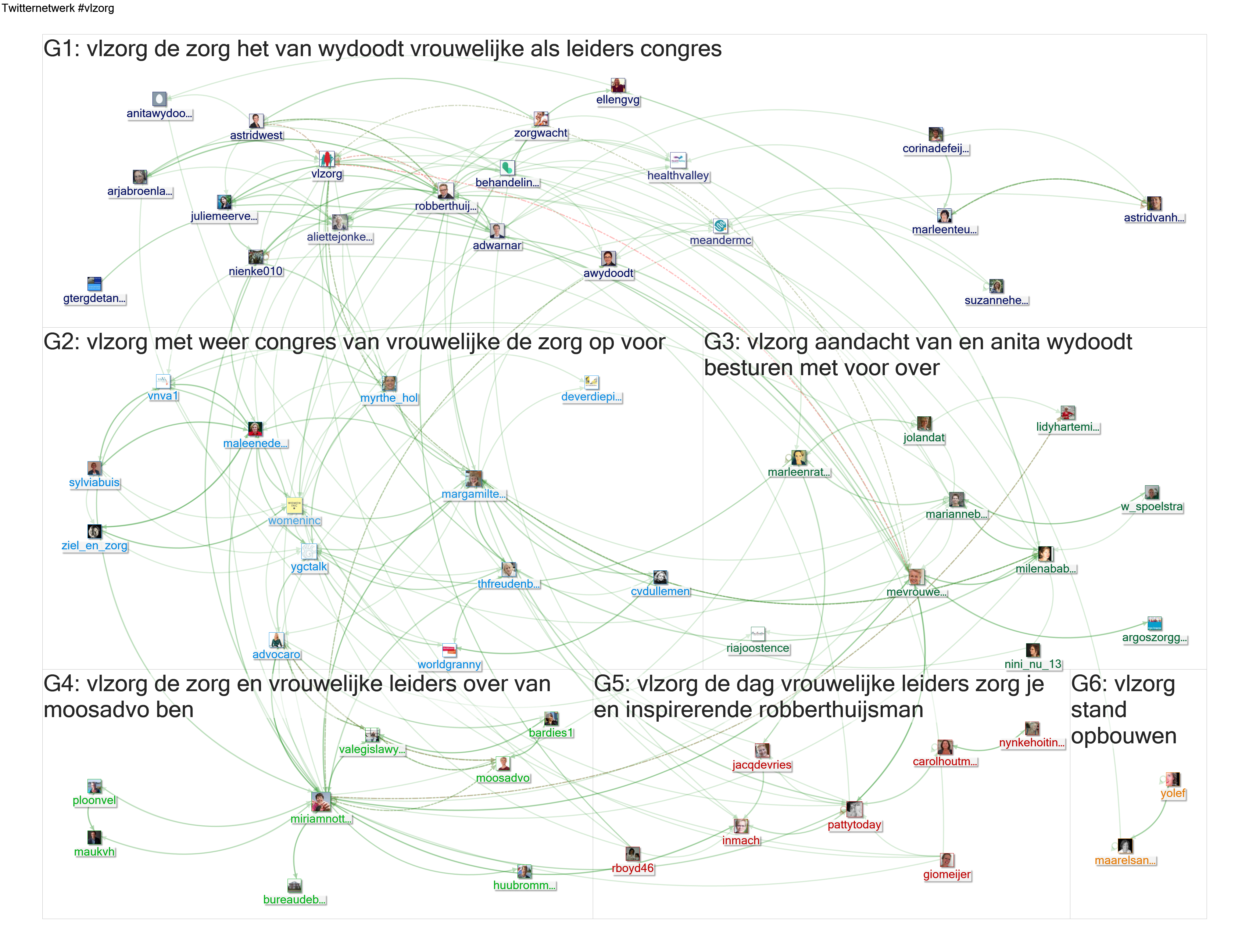 De meest genoemde Twitteraars in het gehele netwerk zijn op één vlzorg, gevolgd door robberthuijsman, moosadvo, milenababovic, mevrouwehand, valegislawyers, miriamnotten, awydoodt, astridvanhest en pattytoday