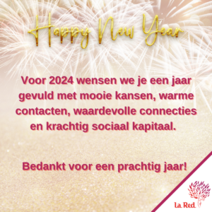 Voor 2024 wensen we je een jaar gevuld met mooie kansen, warme contacten, waardevolle connecties en krachtig sociaal kapitaal. Bedankt voor een prachtig jaar!